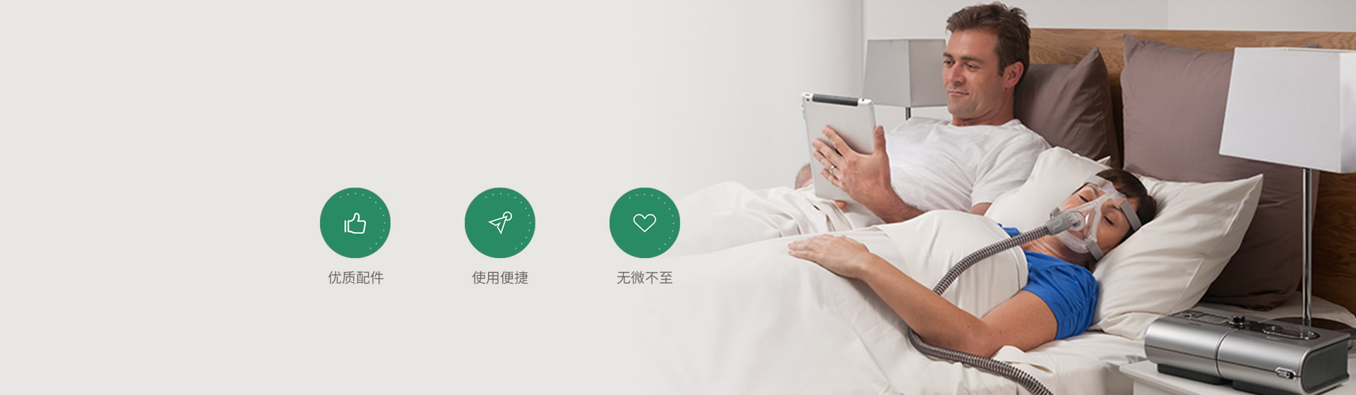 面罩硅膠柔軟貼合面部,精密的人體工程學(xué)設(shè)計(jì),全時(shí)密閉,減少漏氣,提升無(wú)創(chuàng)通氣的效果。